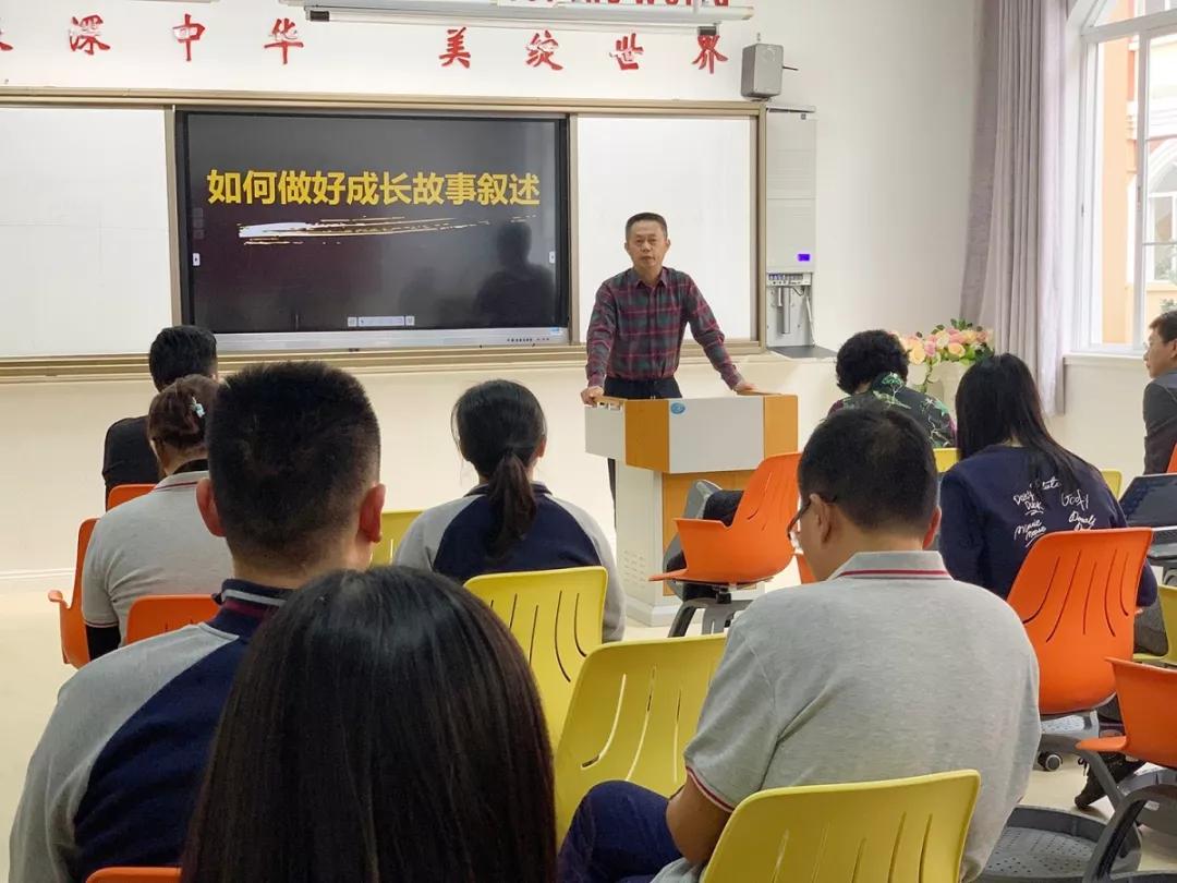 为进一步加强教师队伍建设,提升班主任教师及青年教师的能力和素养,华美外国语学校于2019年12月21日下午,开展了“如何做好成长故事叙事”的主题培训活动。此次活动王满英校长、小学部周亚南校长多方协调,邀请到了罗湖外语学校高中部德育处主任徐博老师,徐主任的一场精彩绝伦的讲座,令全体教师茅塞顿开。