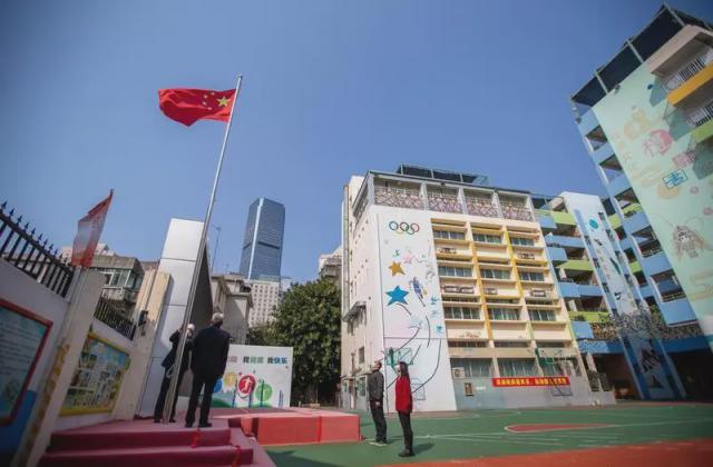 开学首日的校园里大多事空空荡荡的。而罗湖的红桂小学的操场上,4 个人戴着口罩现身,校长叶育枢担任升旗手,将五星红旗冉冉升起 , 为同学们带来了一场别样的升旗仪式。