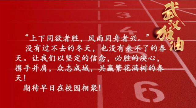 最后,他鼓励同学们:" 没有过不去的冬天,也没有来不了的春天。让我们以坚定的信念,必胜的决心,携手并肩,众志成城,共赢繁花满树的春天!"