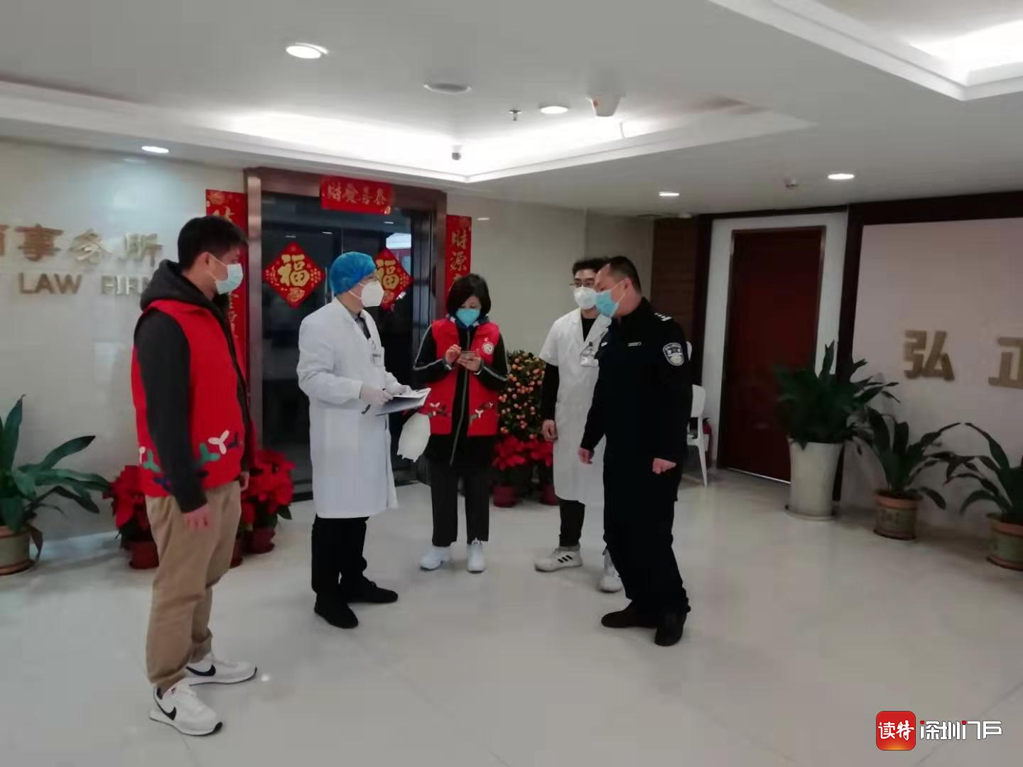 “鹏大厦有一户居民途经重点地区返深人员……”鹏大厦管理处反映,有住户从河南乘动车回深,途径武汉,接到消息后姜羽平带着网格突击队员与社区社康工作人员和社区民警组成的“三位一体”小组第一时间赶到小区门口,将居民一家送往翠竹健康驿站进行核酸检测。