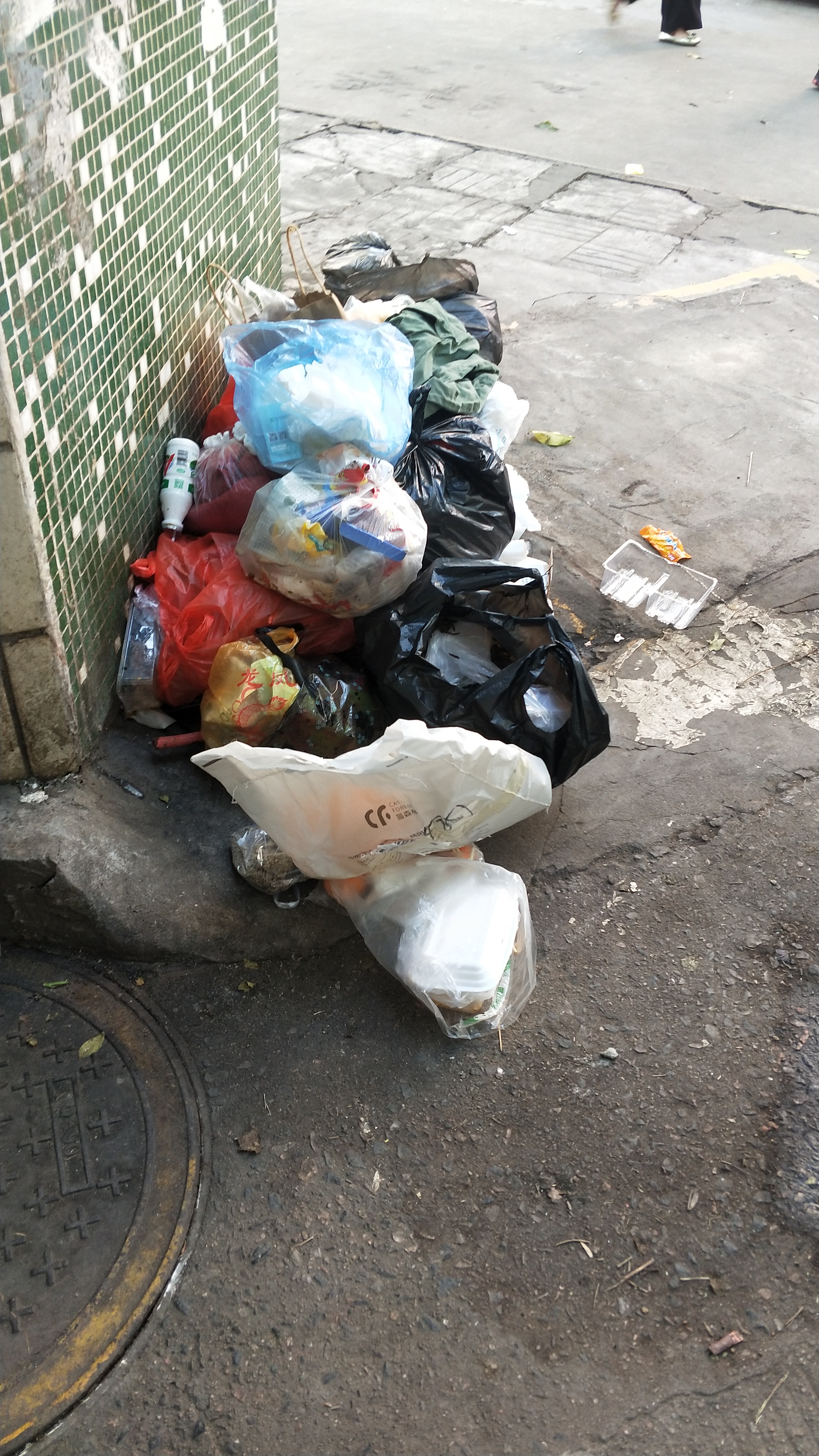 这个地方也没个垃圾桶,垃圾都是堆在这里